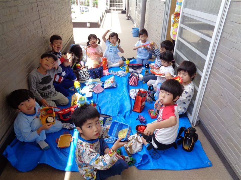 お話しは出来ませんが、うめさんはお外にシートを敷いて食べました。