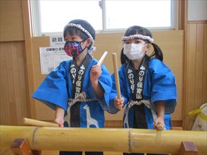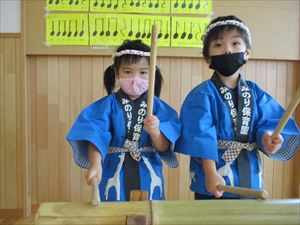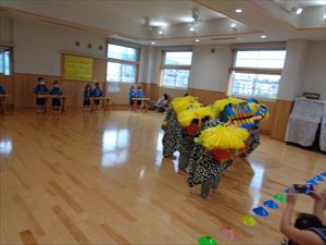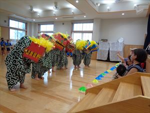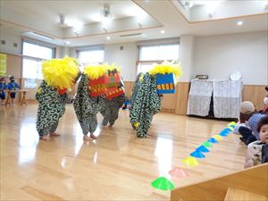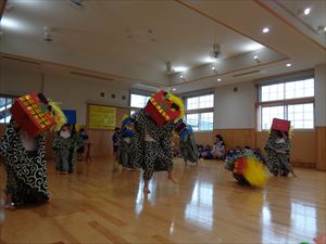 オープニングはゆり組、うめ組によります「獅子舞」と「竹太鼓」です。