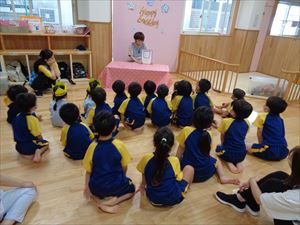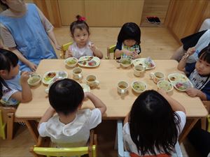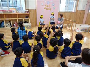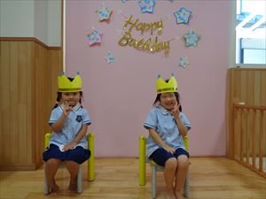 7月はみんなで5名のお誕生者がいましたが、欠席のお友だちもいて2名のお祝いとなりました。