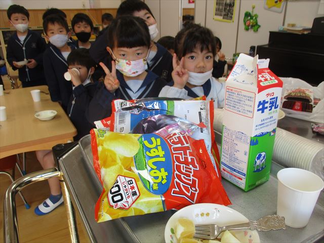 おやつも園長先生にもらったお菓子をた~くさんたべました。