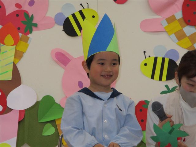 ホールでインタビューを受けたり、先生たちによるパネルシアターで楽しい時間を過ごし