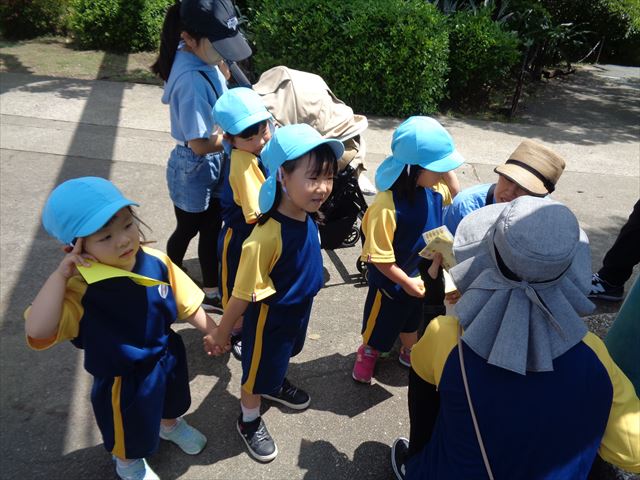 帰りにはお菓子のプレゼント。普段送迎時はバタバタですが、マスクも外し、保護者の方を含めたくさんの笑顔が見れて楽しい遠足になりました。