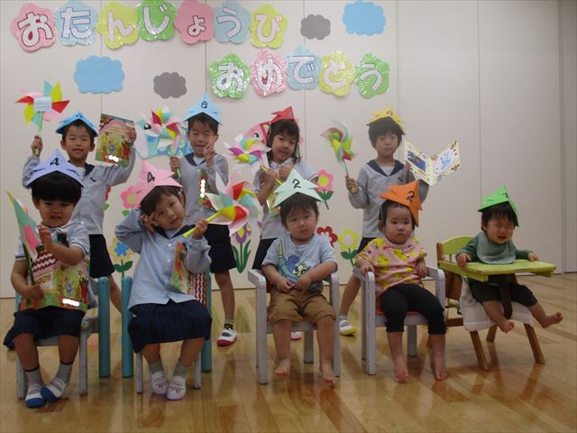 5月生まれの誕生者10人のおともだちのお誕生会がありました。