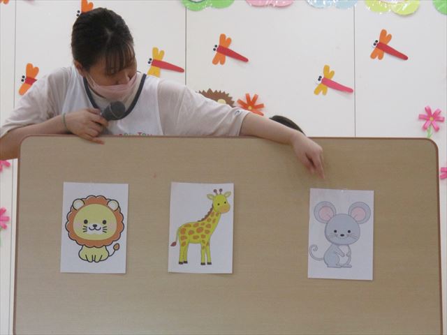 お誕生会の後には、動物の鳴き声当てクイズを楽しみました。リアルな鳴き声で盛り上がりましたよ。