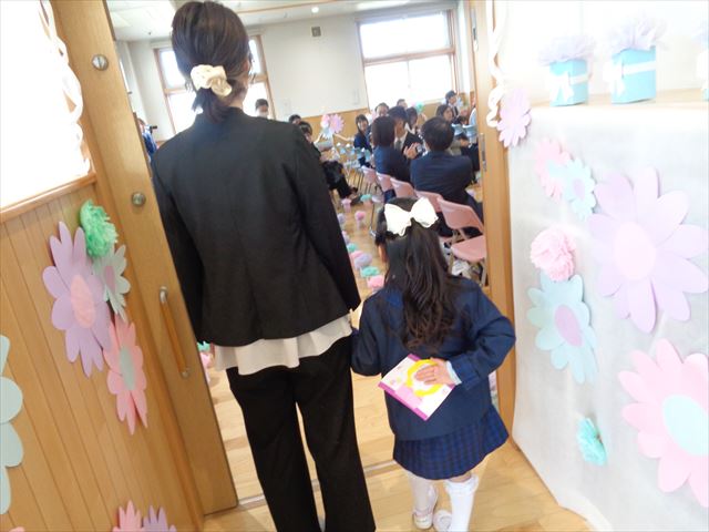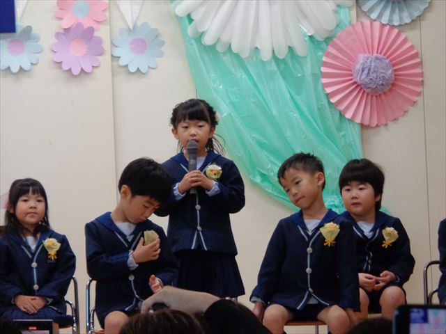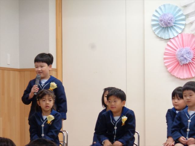 覚えたてのひらがなも上手に書けるようになり、お家の方への内緒のお手紙を大事そうに後ろへ隠しながら入場する姿が微笑ましく卒園式が始まりました。
