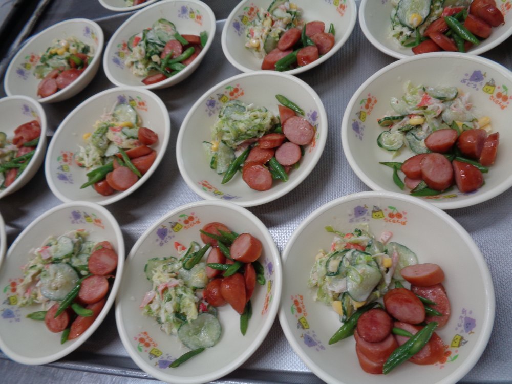 子ども達はたくさんのインゲンが採れて、大喜び!給食メニューに合わせて採れたてインゲンをいただきました。新鮮なインゲンは柔らかくておいしい!もっともっと食べたい!自分たちで育てたインゲンは格段においしかったようです。