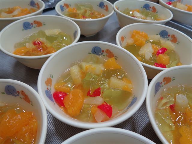 おやつはカラフルゼリーでした。