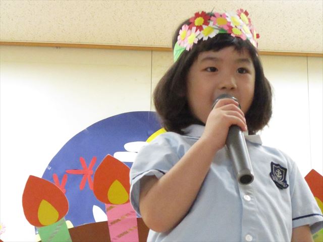 マイクをもってニコニコ(^^) みんな元気にごあいさつできました。