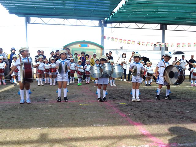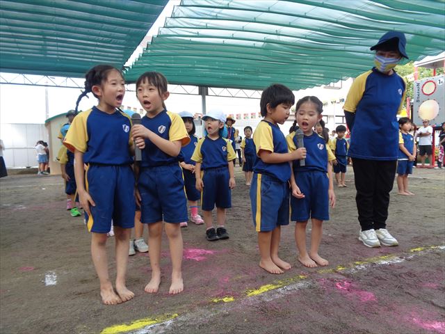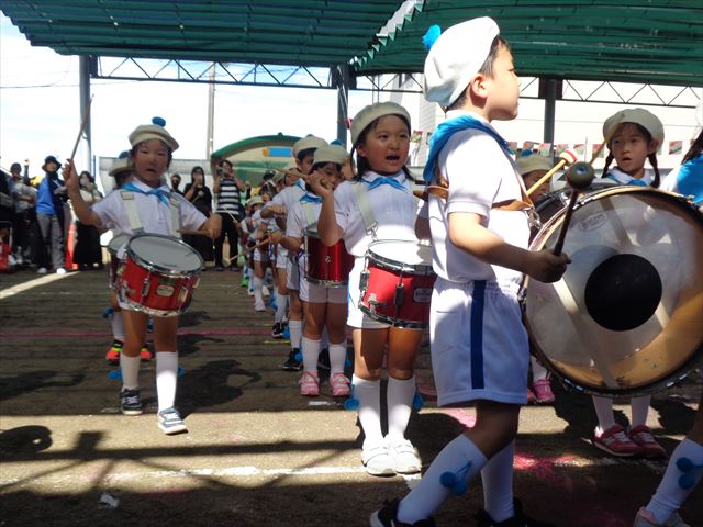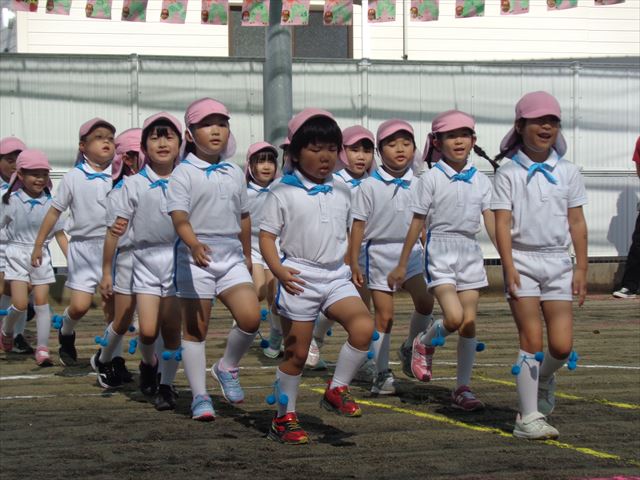 雨の為開催時刻をずらしてからの午後1時スタートとなった第2部、青空が見える中、以上児さんの運動会が始まりました。