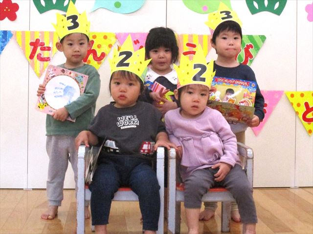 1月生まれのお誕生会の様子です。みんなで5人。