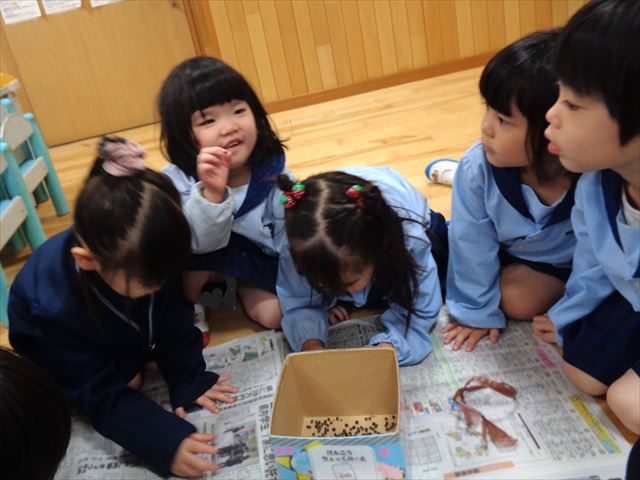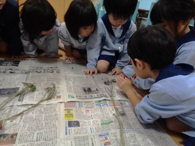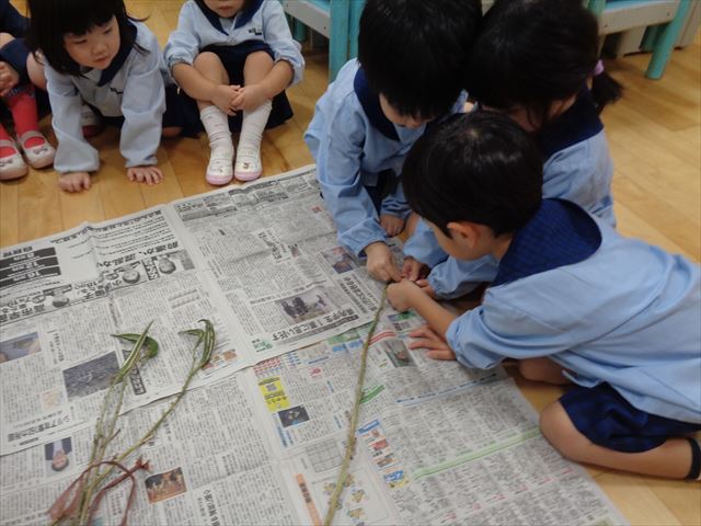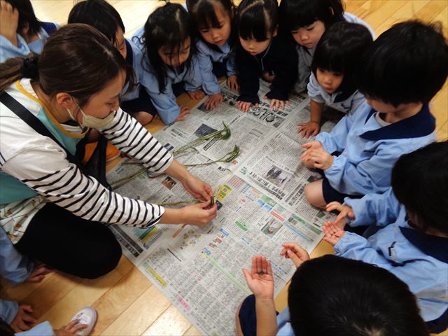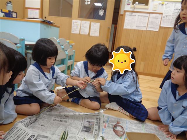 子ども達は小さなオクラに興味津々。小さな種を嬉しそうに集めて見せてくれました。