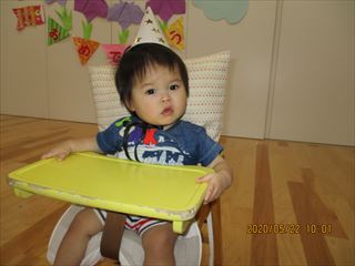 保育園で迎える初めてのお誕生会のおともだちもいました。初めは緊張していたけど、にこにこ笑顔で手や旗を振ってくれたりてしてとってもご機嫌になりました。