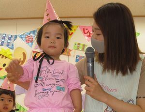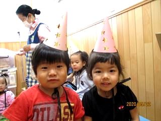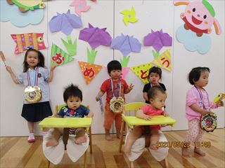 コロナウィルス感染対策のため以上児と誕生者だけの参加ですが、とってもにぎやかで楽しいお誕生会になりました。