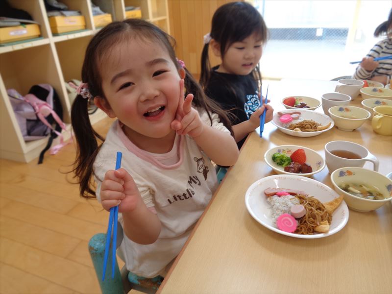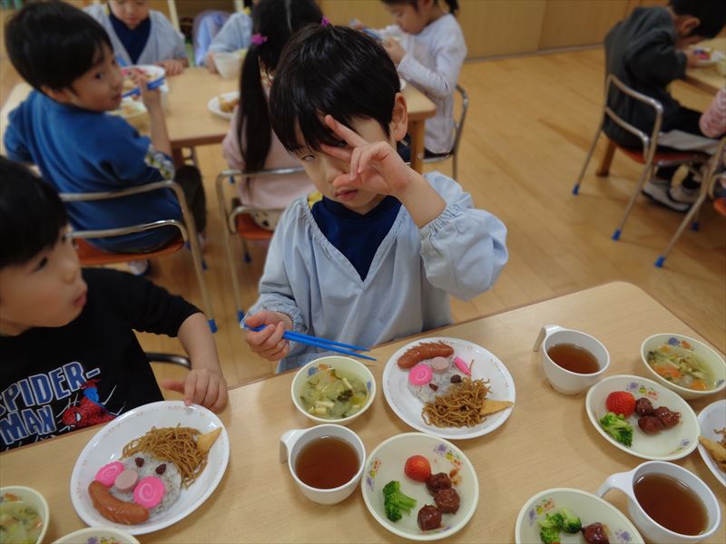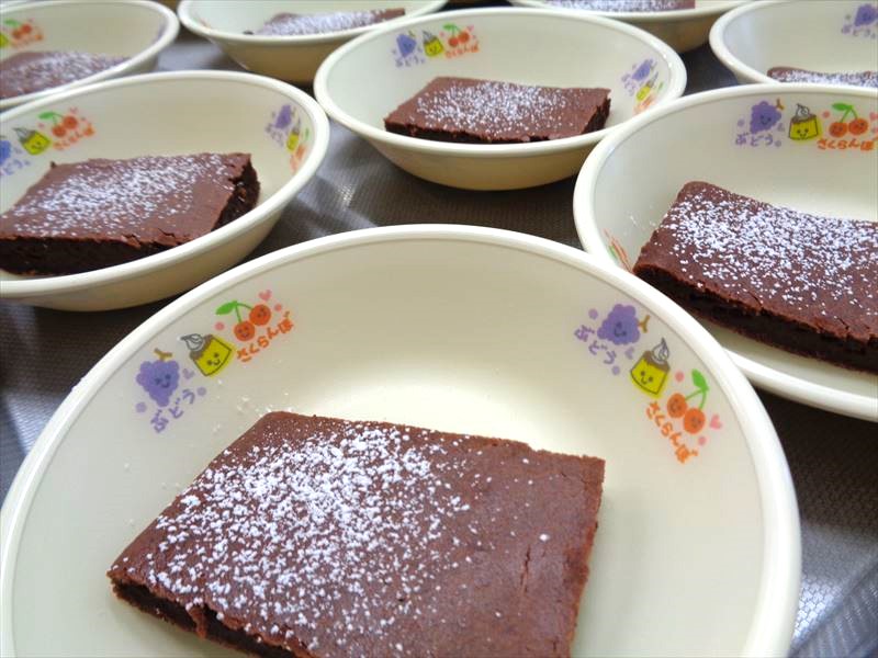 給食は鬼ランチ、おやつには豆腐のガトーショコラをいただきました