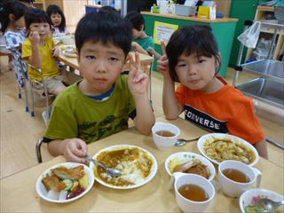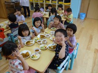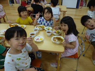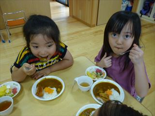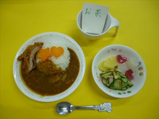 ご馳走は、みんな大好き「カツカレー」!!おなかいっぱいおいしくいただきました!!!