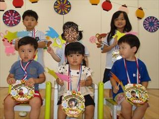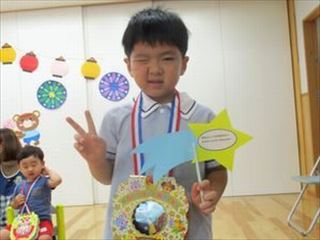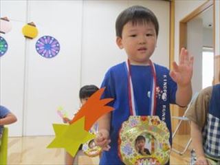 また、年長さんはゲームの話やみんなと一緒に「虹」の歌を歌ったりして楽しい会になりました。