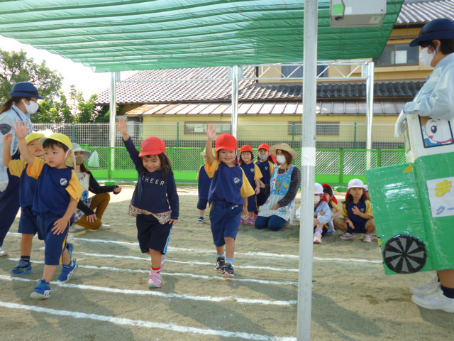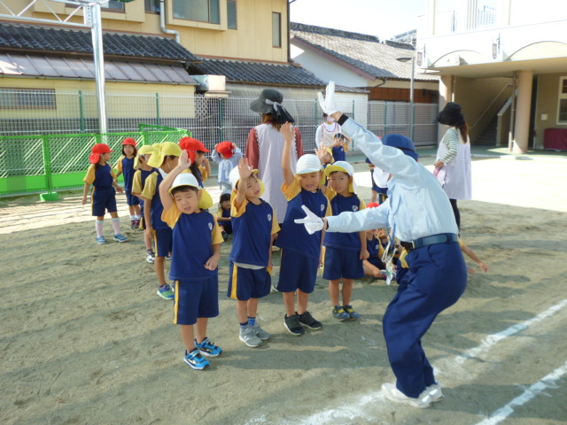 3歳以上児のももぐみ、うめぐみ、ゆりぐみの交通安全教室がありました。