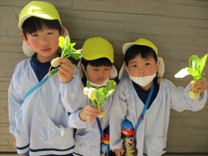 うめぐみさんが育てているかぶが少しづつ大きくなっています。ひとつのカブを大きくするために周りのカブを…続きを読む